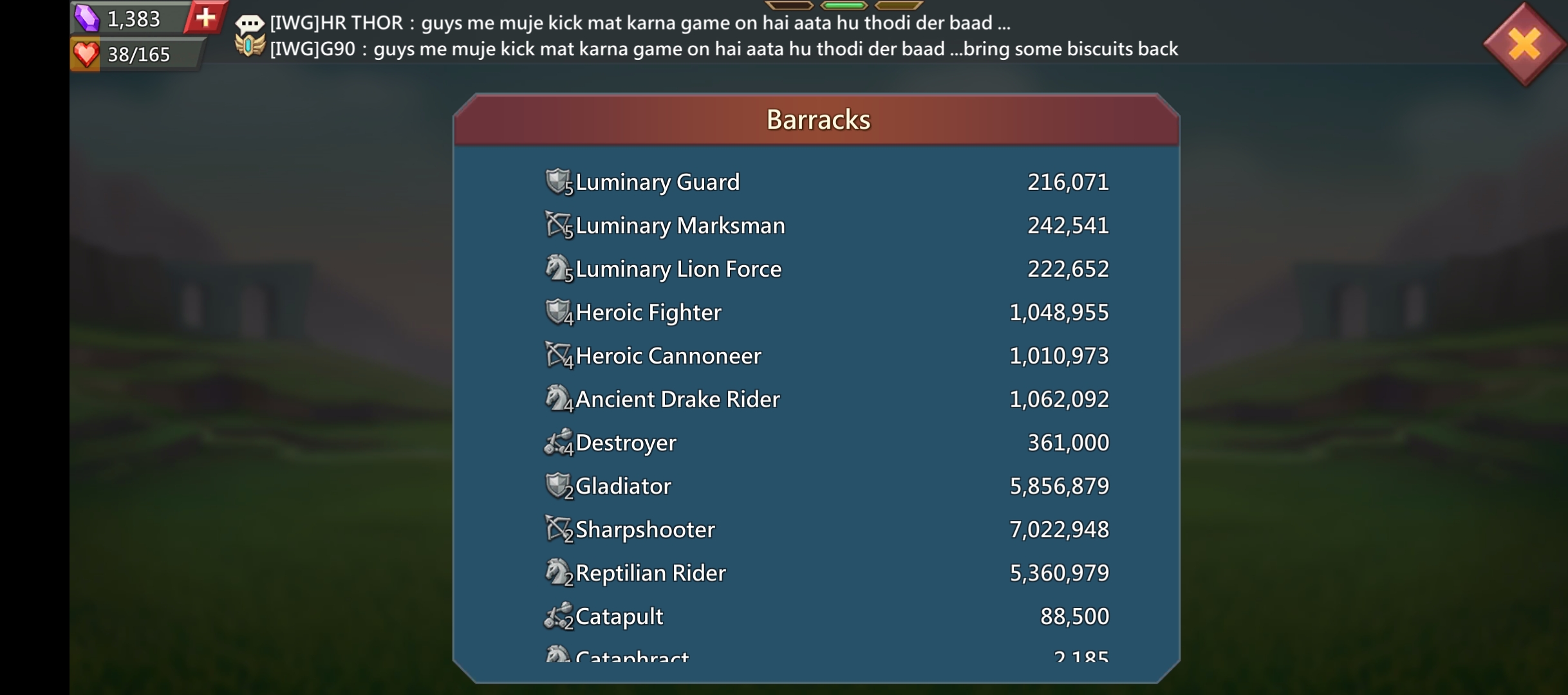 15m army t5 t4 t2 mix . With 500m might well maintained acc. Bag fully loaded with speeds , relocaters, wings , resourc...