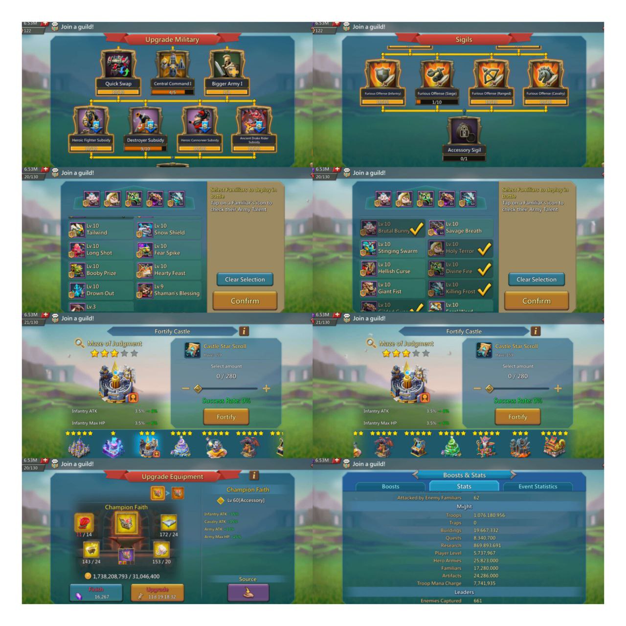 * 17 M troops * Loaded bags * Good speeds * 4 Castle skins *
